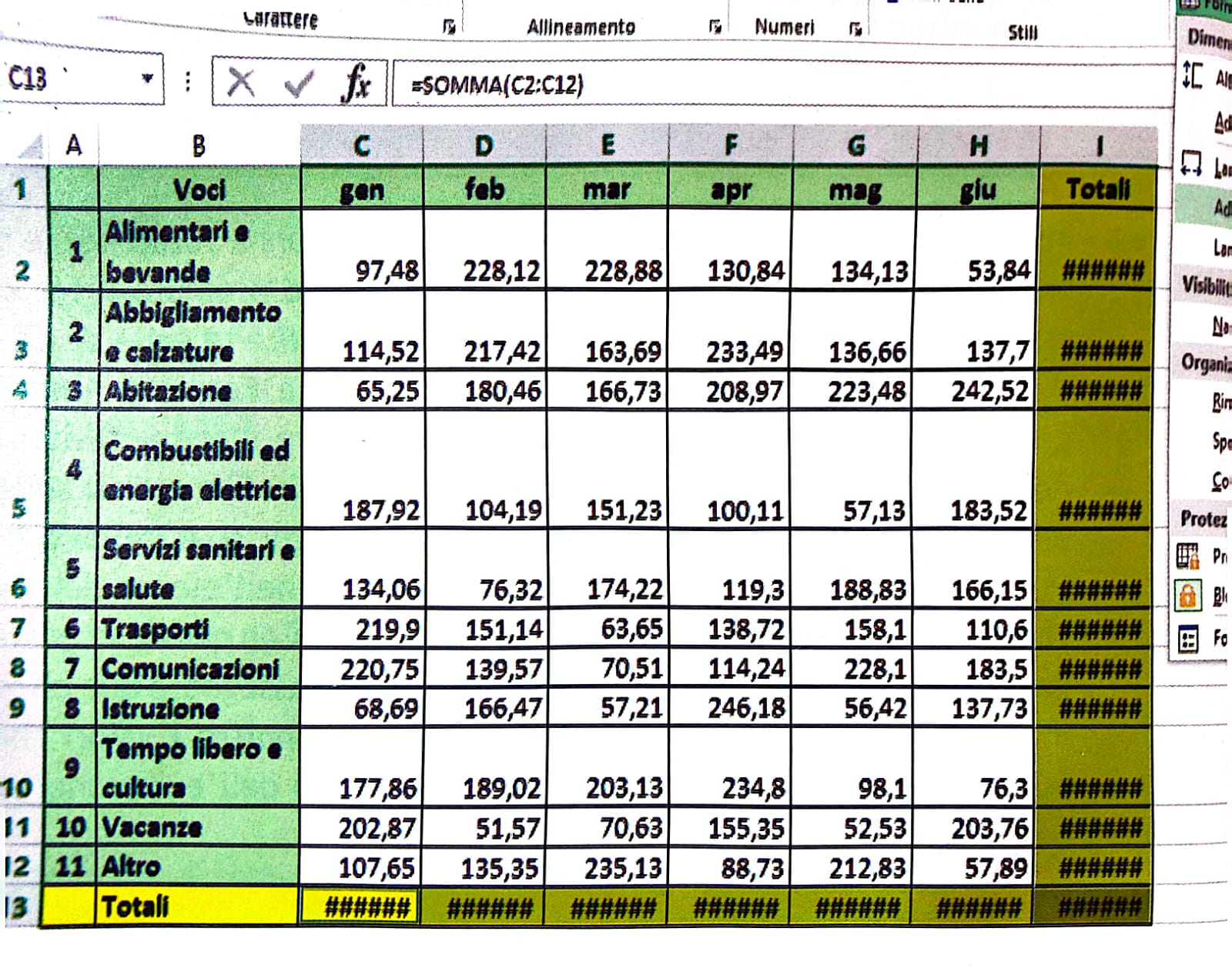 Foglio Elettronico di calcolo: