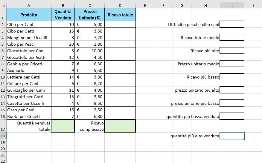 In questa sezione trovi esercitazioni da eseguire con un foglio elettronico di calcolo, ideate per migliorare e approfondire le tue abilità nell’organizzazione e nell’analisi dei dati.